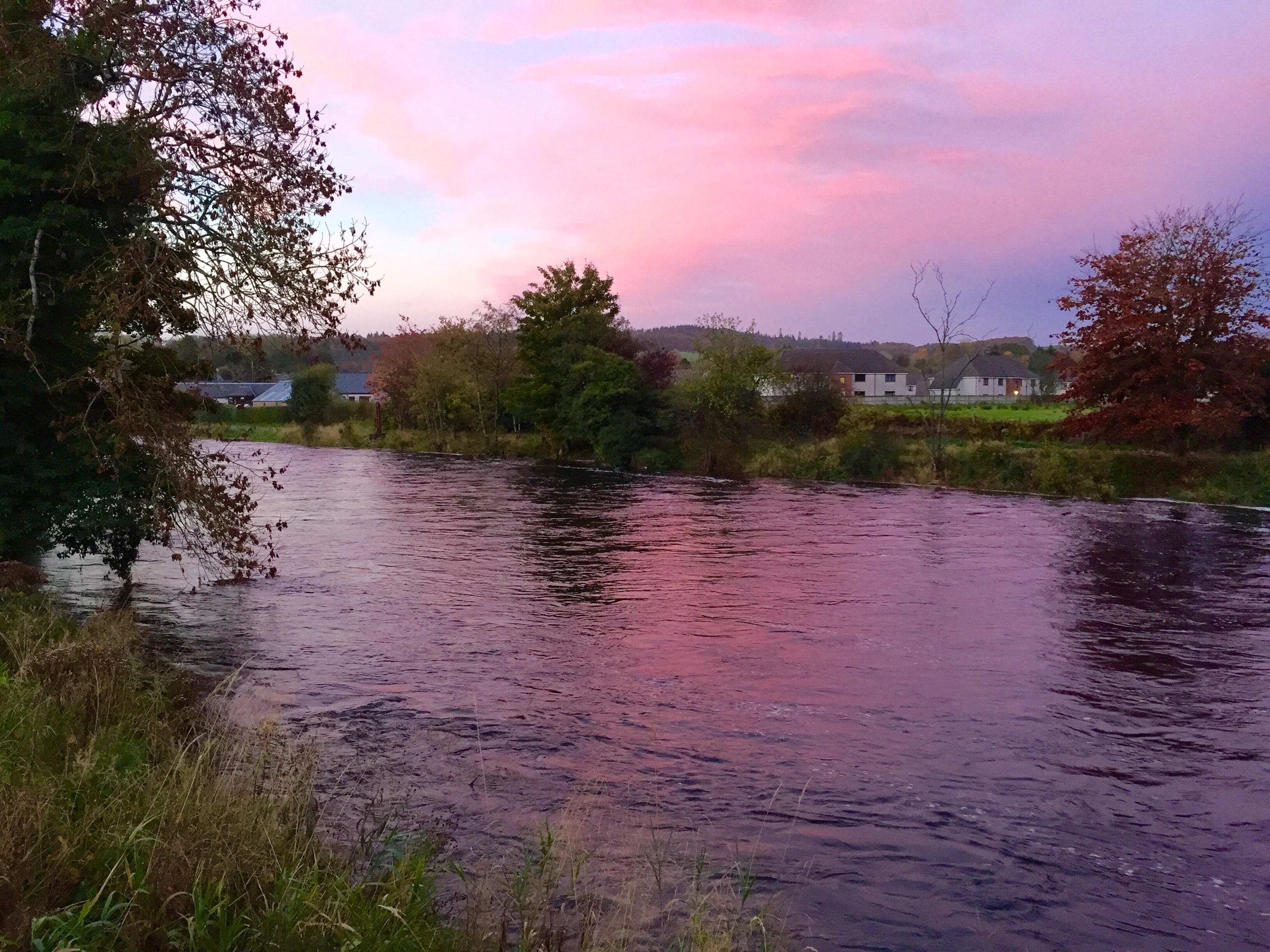 The cow who lost the mooing competition #shamefulOn the way back from the edge and after arguing with some cows who were blocking the road, we decided to stop off at Newton Stewart. Josh was asleep so couldn’t object and Abs was feeling compliant (or had spotted an opportunity to wind up her brother by agreeing to something she knew he would hate) so we weren’t bombarded with the usual barrage of objections for suggesting we go somewhere “off plan”. The sun was working its magic yet again enveloping everything in a pink half light. Josh was trying hard to counteract this colourfulness by adding some blackness to the mood – let’s just say he was not impressed to be woken up for “another walk”!