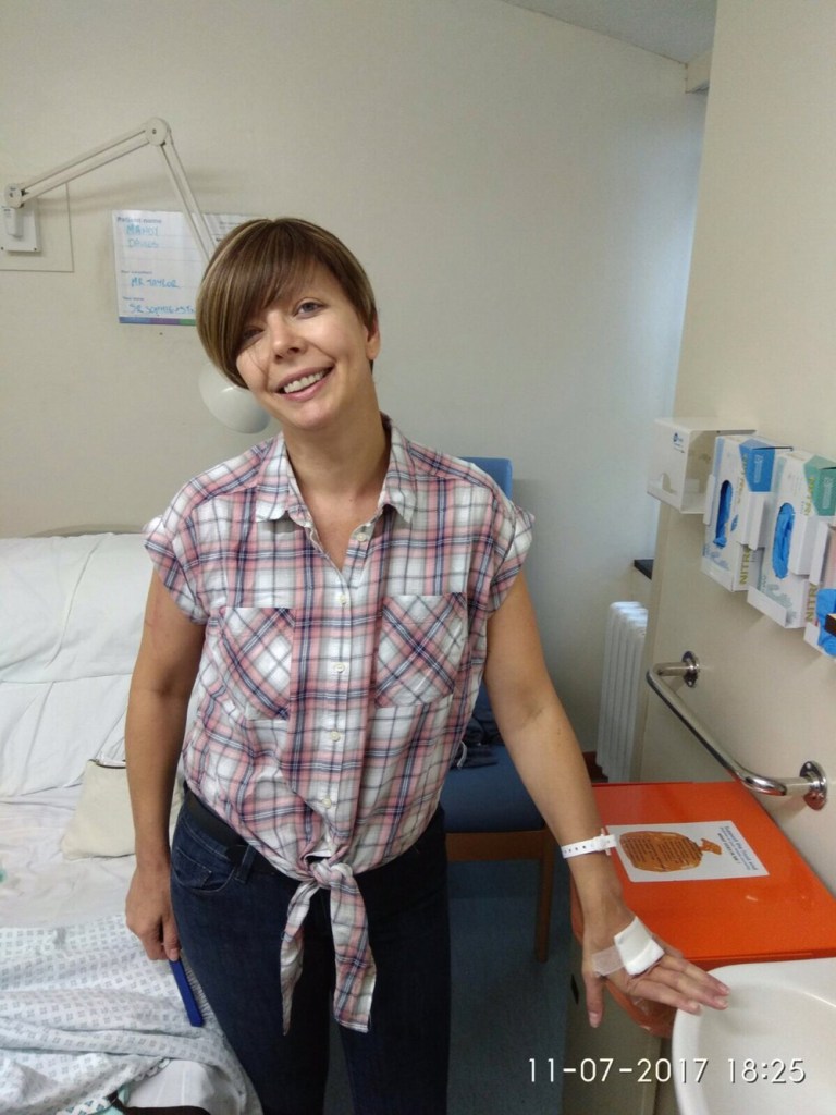 Surgery went according to plan with no mishaps or curve balls. I was in theatre for a couple of hours but soon back up on Ward 18. As luck would have it I was given a private ensuite room which was a nice surprise and quite handy when just a few minutes after being wheeled back I found myself dashing to the loo to throw up due to the effects of the anaesthetic. Tired but pain free I drifted in and out of a light sleep for the next couple of hours but I was determined to get home so made sure I drank and ate whenever I could. My surgeon came to visit about 5pm and confirmed he was happy to let me go home (yay) and by half 6 I was back with my family – still throwing up but relieved and comfortable.