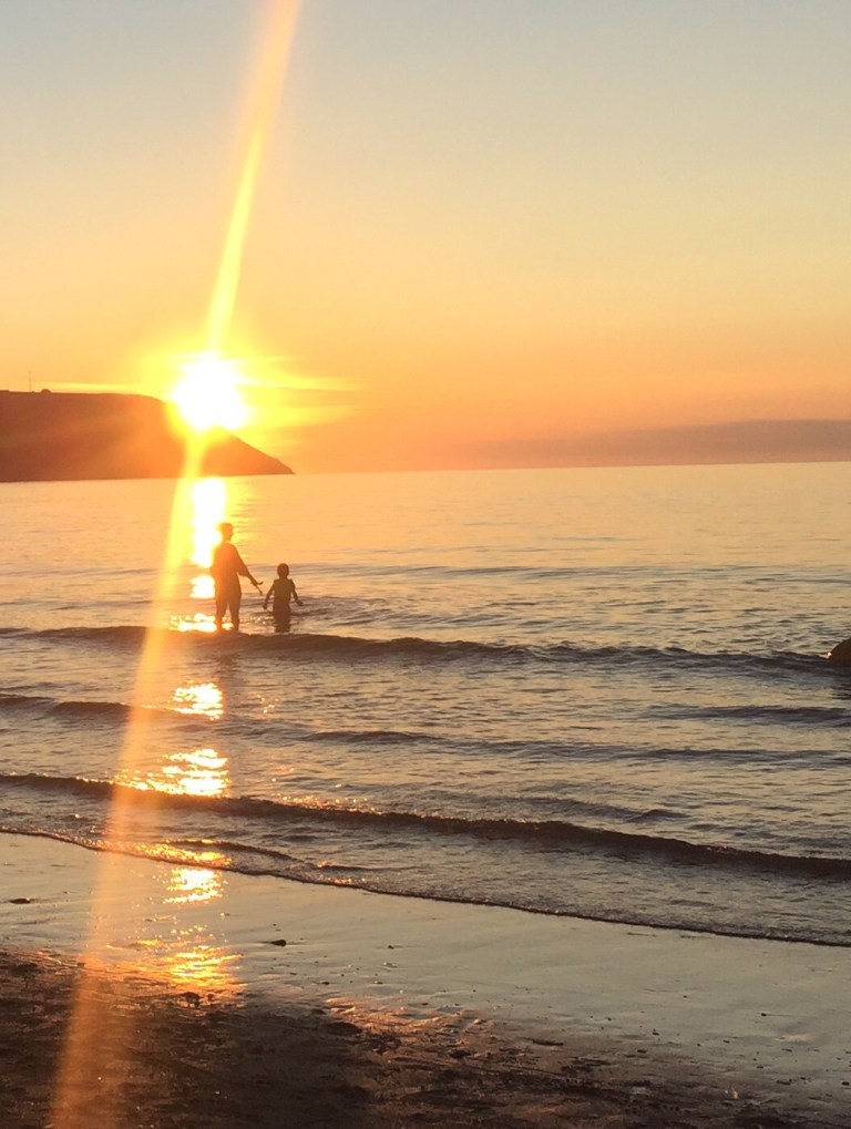 The sun is shining by the time we get back to the caravan. My grey demeanour lifts as I stuff myself with BBQ burgers and enjoy the togetherness that the food, sunshine and vodka brings. With another spectacular sunset on offer and a mad dog needing to burn off energy we drive to nearby Mwnt, a beautiful NT beach and headland. My inner calm fully returns. I can’t be grumpy with so much beauty around.