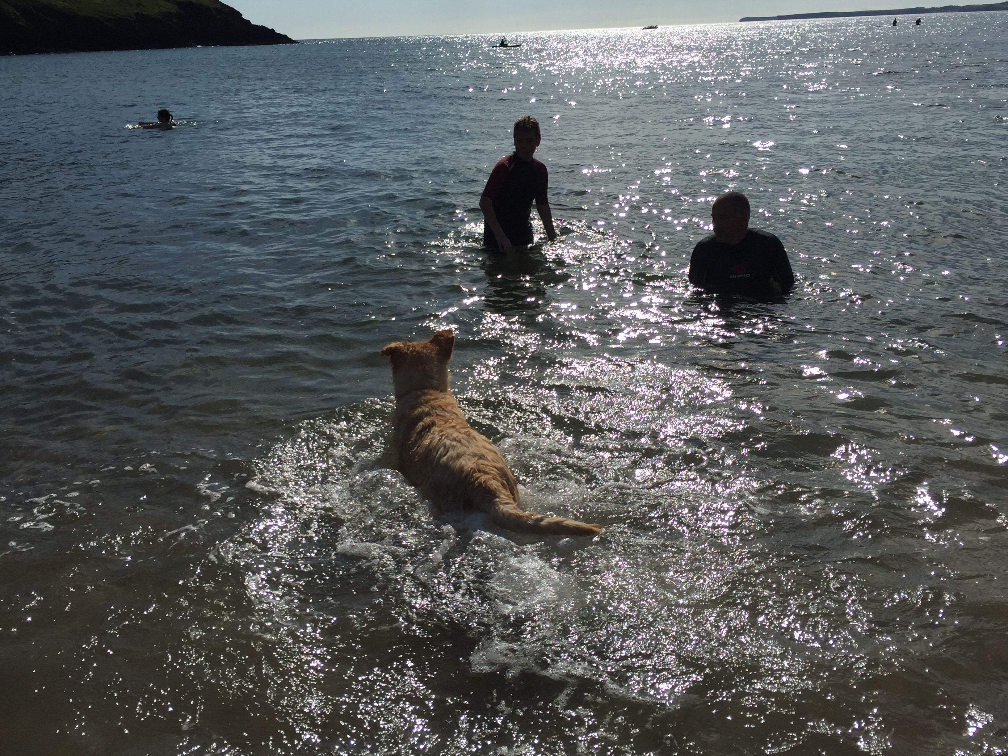 The boys squeeze themselves into wetsuits (always hilarious) and brave the cold sea; they’ve been looking forward to going snorkelling. Ab and I dog sit. Lilly is a nightmare. She doesn’t settle, constantly tramples over us and she growls at any other dog who dares to come within a few feet of base camp. Perfect.