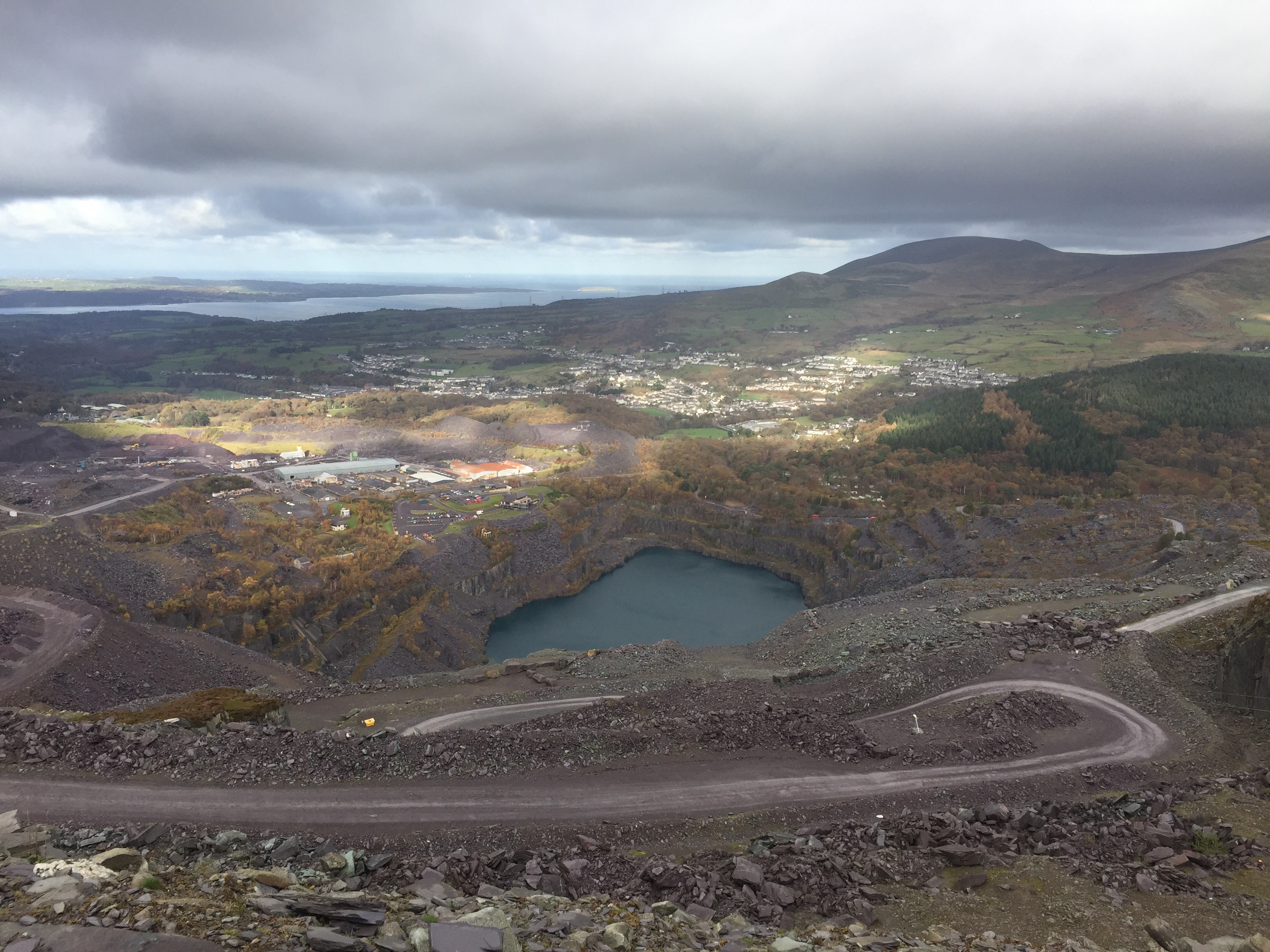 Fast forward a few months and it’s a cold, wet, very early (as in 7am! Who gets up that early on a Sunday morning if you don’t have tiny people waking you up at an ungodly hour???) November morning and we find ourselves heading off for a 3 hour drive in heavy rain up to Penrhyn Slate Quarry in Bethesda. The kids (including Abbie’s boyfriend who must think we are nuts) are unimpressed at being woken at 6am, the dog’s going mental because she thinks she can come with us and I’m remembering how much I hate heights. Ideal.