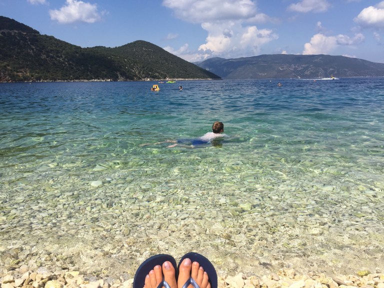Kefalonia – Our family summer holiday was totally amazing. Perfect. Just what we needed after the trauma of last year. Kefalonia is such a beautiful island and I defy any of you not to fall in love with it. We chilled out massively, ate way too much incredibly good Greek food, hired a speedboat for a day, rode jet skis, hired a car to explore the island, snorkelled, watched Turtles swimming in Argostolli harbour, drank cocktails and, most importantly, recharged and regrouped.