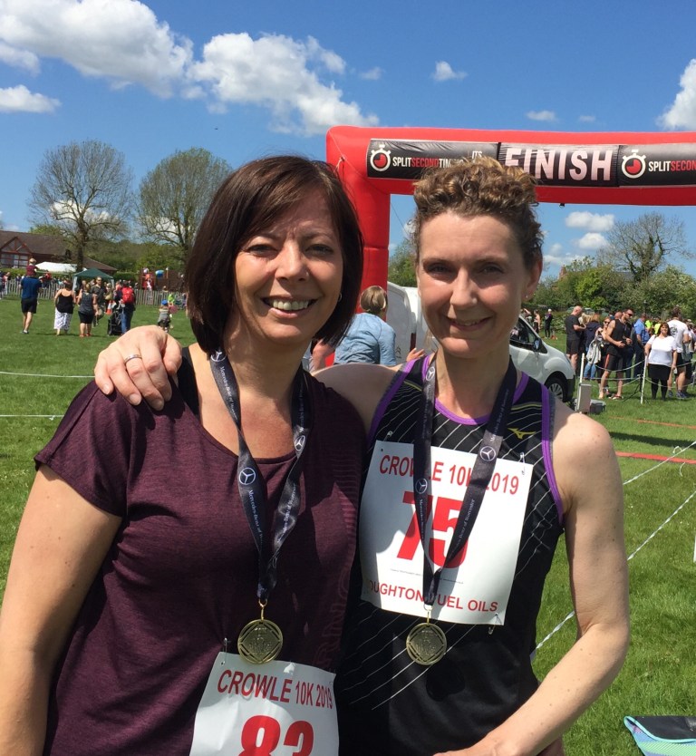The last 1k was really hard work. It was largely uphill and my legs were dead. But again the supporters really helped and somehow my legs just kept on going. And there was no way I was going to let Jo down so close to the end. With just a lap of the field to go I was starting to feel a bit emotional. Karl and Tina were there cheering us on – having finished in 46:36 and 52:44 minutes respectively. Jo and I were really struggling by this point. But we crossed the finishing line together with an official time of 1:06:22 totally smashing our 1:15 target time. We ran the whole distance without walking – and there wasn’t too much chatting going on either!